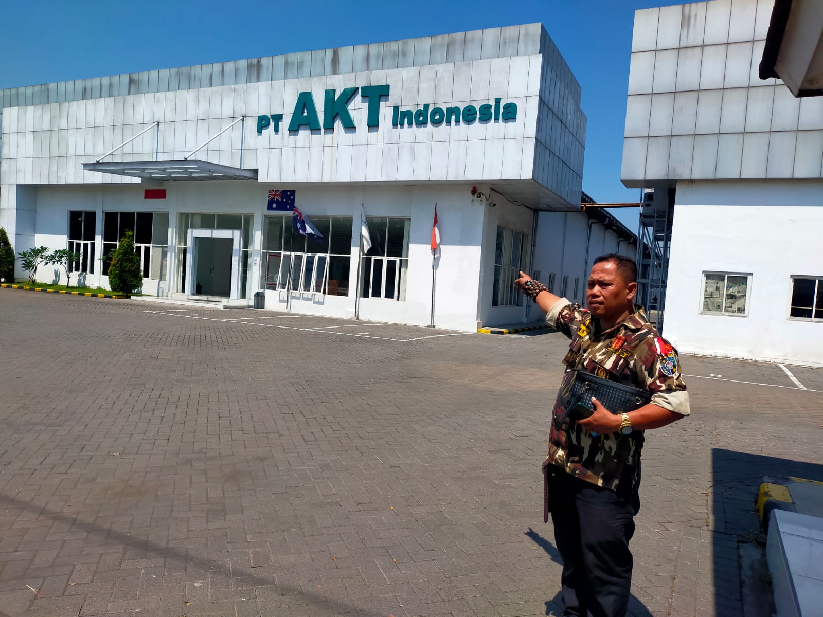 Bendera kebangsaan Australia berkibar di depan pabrik. Bahkan, juga tergambar dalam dinding pintu masuk pabrik. “Kami sangat mengecam pemasangan bendera Australia tersebut. Karena pemasangannya dilakukan di depan perusahaan bisa merongrong NKRI,” paparnya.